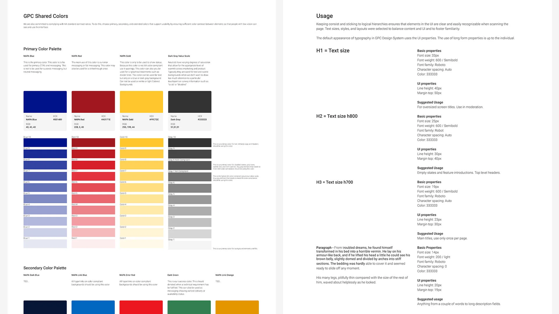 To create and implement a design language with reusable components to work cohesive and efficiently across GPC Enterprise. This project started back in 2019 when design systems became a popular topic among the design community. That being said, we had to work diligently on an executive proposal in order to get buy in from the business. From there we conducted customer research, UI best practices, UX best practices, and reduce the time spent reinventing the wheel on design solutions. This project has evolved so much over the years and continues to grow.